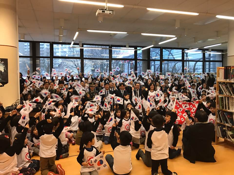 올해는 특별히 외국에서 자라나는 어린이들과 청소년들에게 대한민국 역사에서 가장 중요한 순간인 삼일절과 독립에 대해 가르침을 주고자 파리 한글학교 학생들과 함께 하였다. 한글학교 학생들 280여명 외 주프랑스대한민국 대사, 공관 직원들과 교민, 한글학교 학부모 등 400여명이 한글학교 강당을 가득 채우고 함께 태극기를 흔들며 대한독립 만세를 외쳤다
