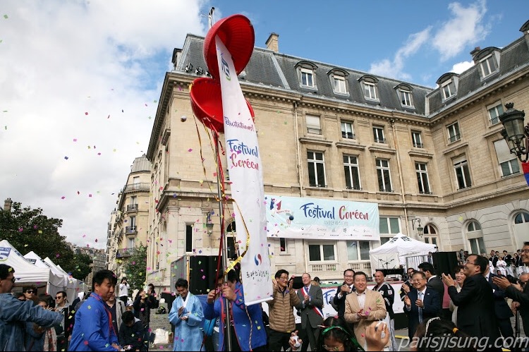 다음날인 10월 1일 본행사가 있었다. 간간히 흐리고 비가 뿌렸기는 했지만 날씨는 쾌청했다. 13시에 시작된 개막행사에는 필립 구종,15구 구청장과 관계자들, 이상무 프랑스 한인회 회장, 그리고 모철민 대사 내외가 두루마리와 한복을 곱게 차려입고 참석했다.