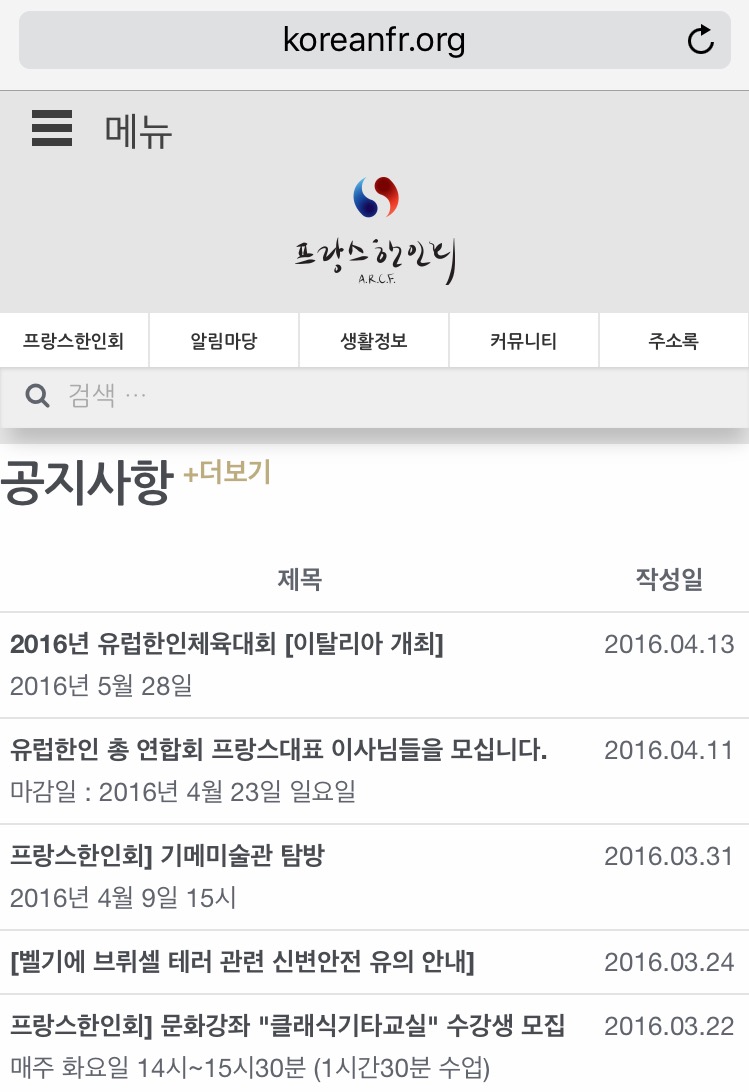 프랑스한인회 홈페이지 모바일버젼 서비스를 시작하였습니다.